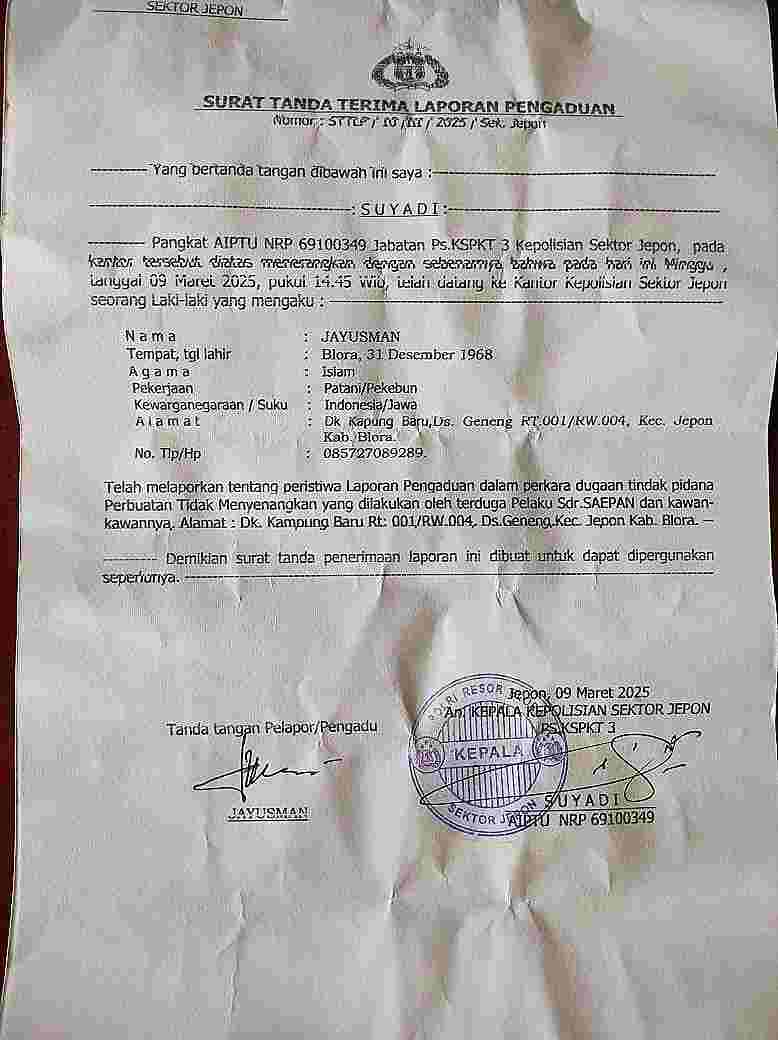 PORTAL TERBARU | Blora – Kebebasan pers di Blora kembali diuji. Ketua DPD IWO-I Kabupaten Blora, Jayusman, mendapat teror dan intimidasi setelah media yang dipimpinnya berani mengungkap realitas lokalisasi di Desa Geneng, Kecamatan Jepon yang masih beroperasi meski Ramadhan.