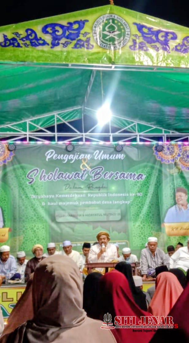 lsmsitijenar.or.id/ Besuki -Situbondo: Malam Kamis (13/8) di Desa Langkap, Kecamatan Besuki, Kabupaten Situbondo, menjadi saksi berkumpulnya ribuan jama’ah dalam pengajian akbar dan doa bersama. Kegiatan yang berlangsung di halaman desa ini digelar sebagai penghormatan kepada para pembabat Desa Langkap, sekaligus memeriahkan peringatan Dirgahayu ke-80 Republik Indonesia.